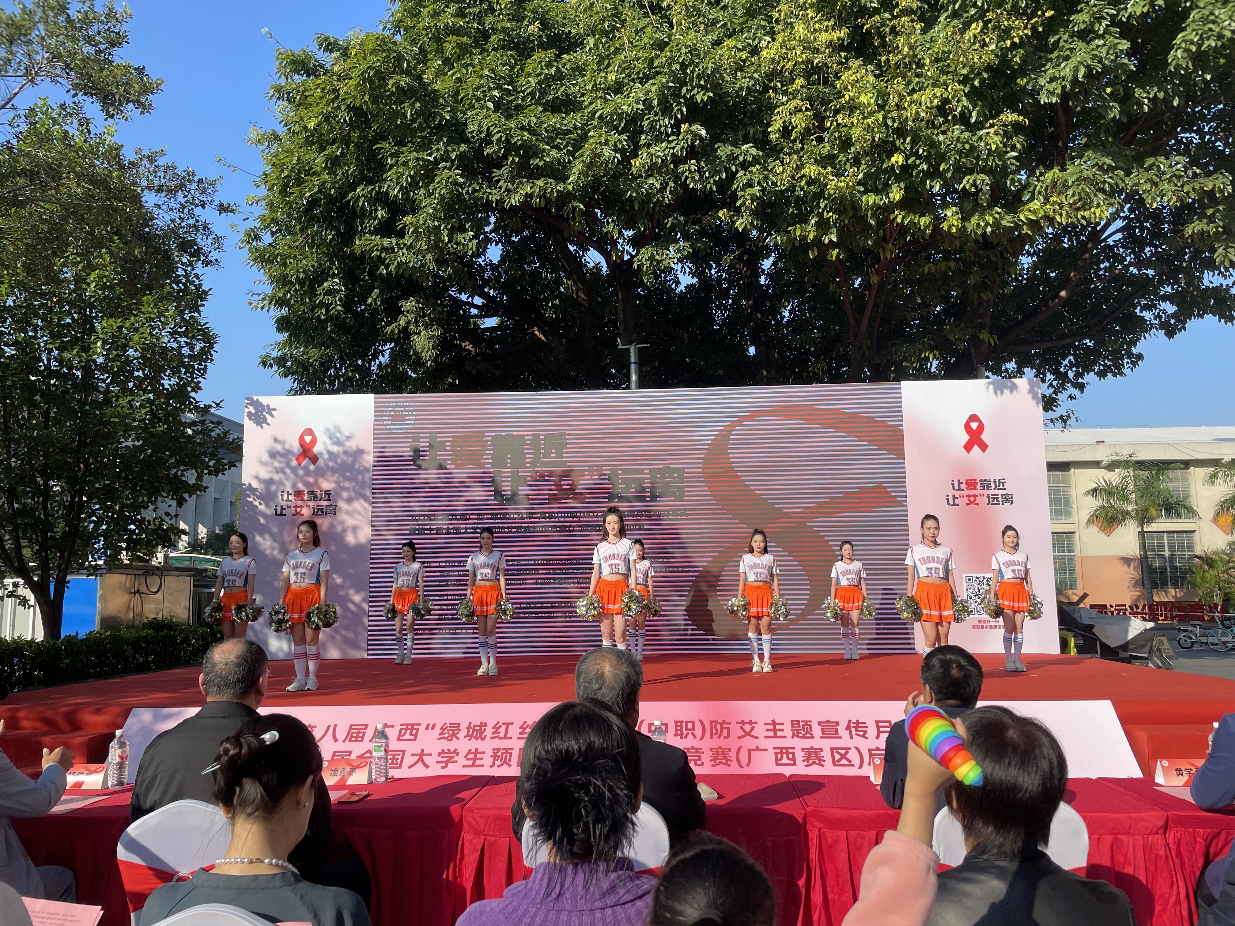 为共同守护青年学子身心健康,筑牢校园防艾安全线,2025年11月15日上午,我校大学生心理健康教育中心组织师生代表赴广西大学,参加第八届广西“绿城红丝带”高校(中职)防艾主题宣传月活动开幕式暨全国大学生预防艾滋病知识竞赛(广西赛区)启动仪式。活动以广西大学精心编排的开场舞蹈拉开帷幕,动感节奏与青春舞步瞬间点燃现场氛围,我校学子与各校代表共同以掌声与热情响应,迅速拉近彼此距离,为整场活动奠定了积极向上的基调。