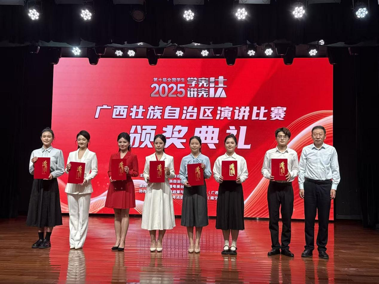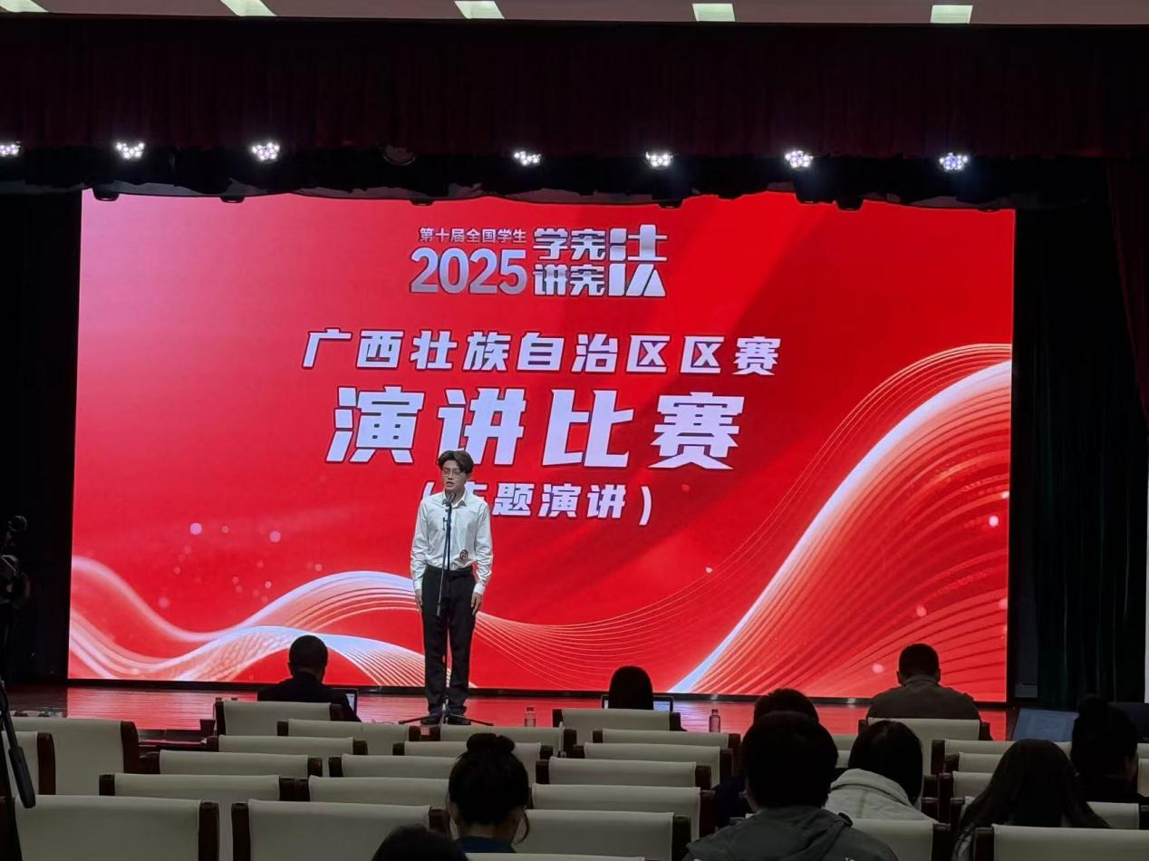 近日,由广西壮族自治区教育厅、自治区司法厅联合主办的2025年第十届全国学生“讲宪法 学宪法”广西赛区演讲比赛,在广西广播电视台圆满落下帷幕。作为全区法治教育领域的高规格赛事,历经校级推荐、全区海选、复赛层层筛选,最终晋级省级决赛的选手需通过“主题演讲 + 命题演讲”两轮高强度比拼,这对选手的宪法知识储备、逻辑思辨能力与临场应变素养提出极高要求。