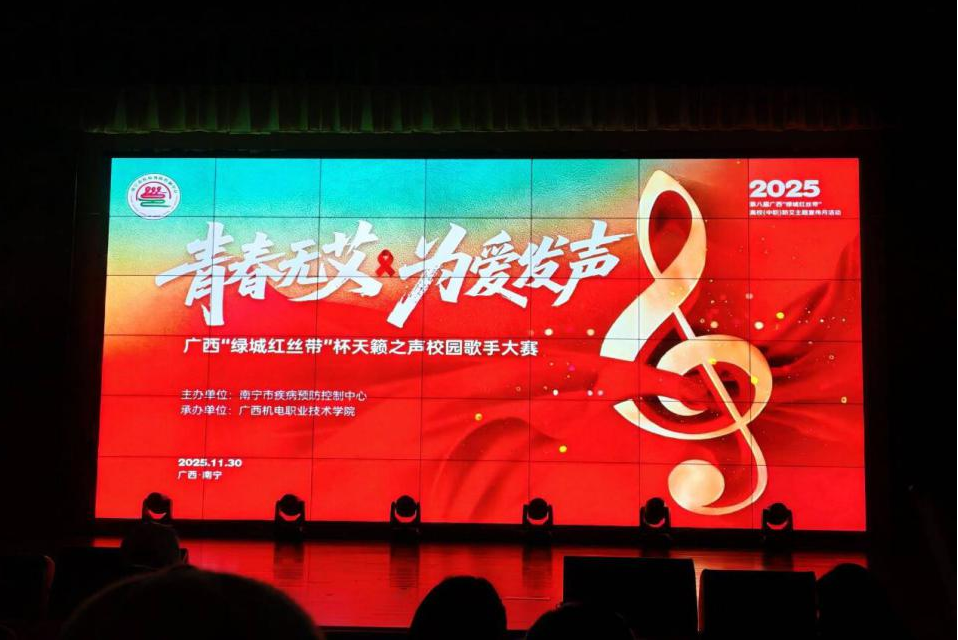11月30日下午,广西“绿城红丝带”杯天籁之声校园歌手大赛在广西机电职业技术学院正式拉开帷幕。本届大赛聚焦“预防艾滋病、维护健康、关爱生命、反对歧视”的主题,汇聚了来自全区37所高校及中职学校的优秀音乐力量,展开了一场既充满艺术感染力又富含深刻社会意义的青春对话。