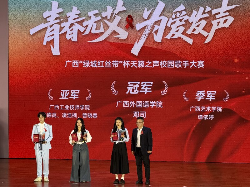 在备受关注的“防艾”歌手大赛中,我校学生邓司以青春视角诠释防艾理念,歌词传递着“科学防护、珍爱生命”的正能量,既展现了扎实的艺术功底,更传递了青年一代对防艾工作的深刻理解与积极态度,最终在激烈角逐中摘得桂冠,用歌声为防艾宣传注入青春力量。