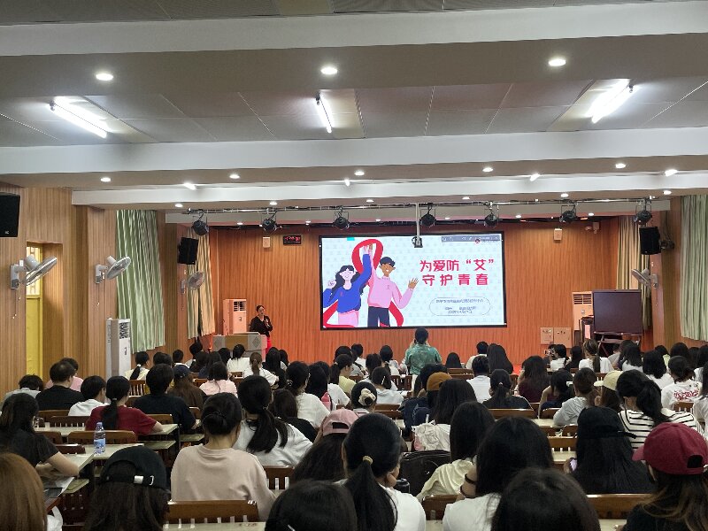 讲座中,郭丹老师结合专业知识与真实案例,系统讲解艾滋病的传播途径、预防措施、检测方式及相关政策,用通俗易懂的语言拆解专业知识,纠正认知误区,引导同学们树立“知艾、防艾、不恐艾、不歧视”的正确观念。现场学习氛围浓厚,同学们认真聆听、积极思考,对艾滋病防治有了全面、科学、深入的理解。